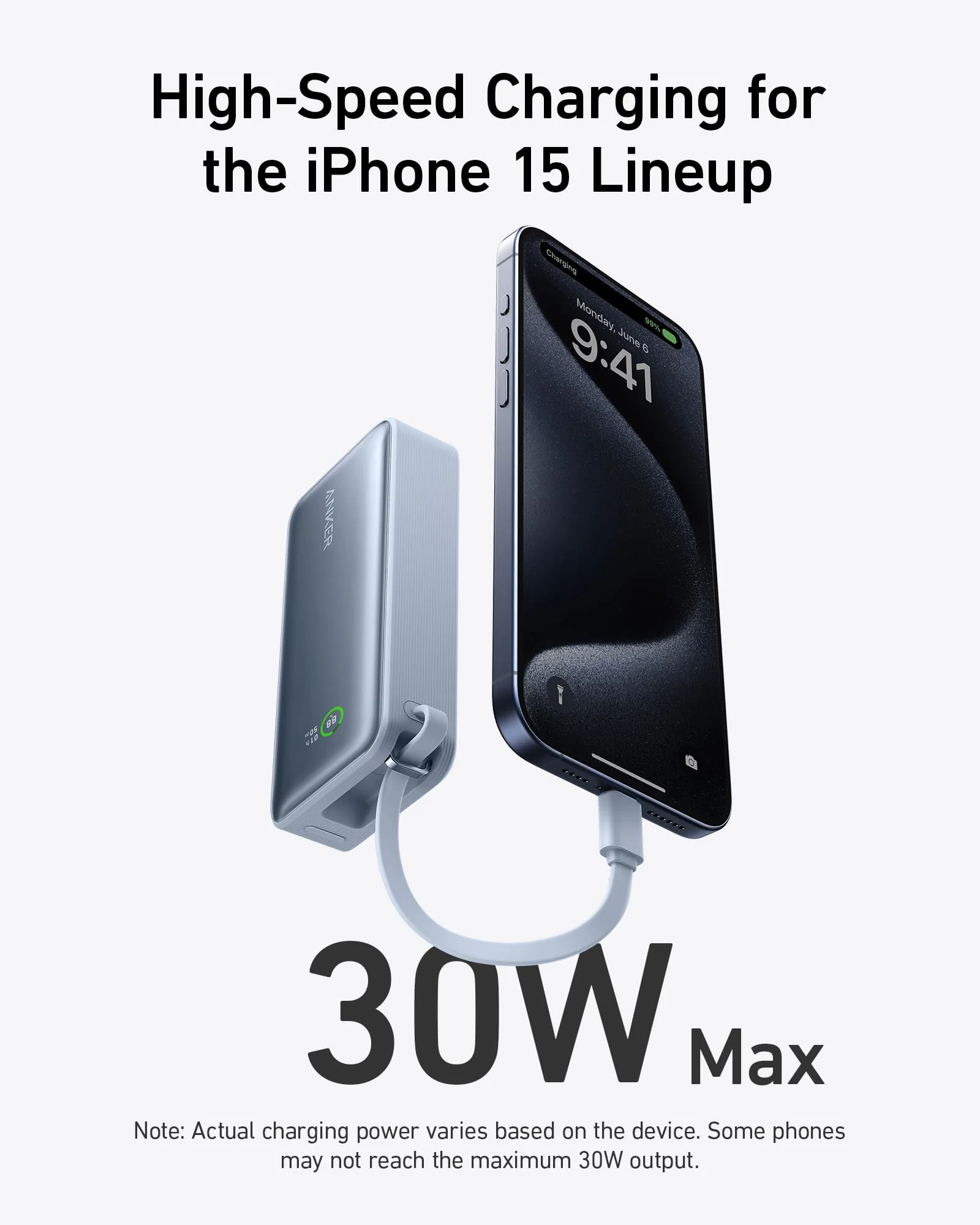 • Внешний аккумулятор Anker 533 Nano Power Bank 30W со встроенным кабелем USB-C.