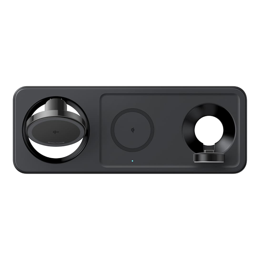- 3-в-1 функциональность: Одновременная зарядка смартфона, часов и наушников.