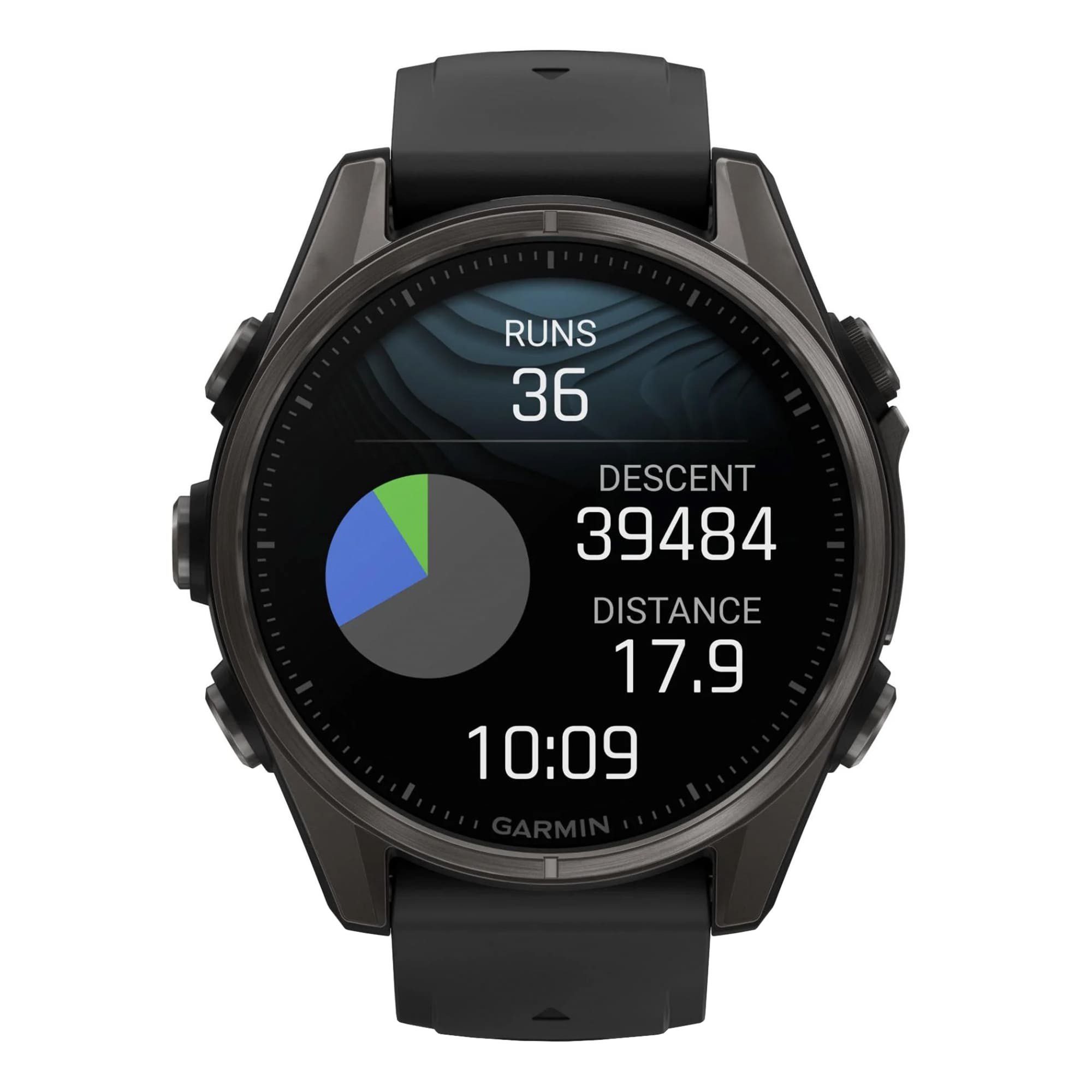 • Навигация: Функция динамического кругового маршрута позволяет вам ввести, как далеко вы хотите отправиться, и получить предлагаемые маршруты, которые приведут вас обратно вовремя. Вы также можете просматривать контуры рельефа на картах TopoActive и получать доступ к предварительно загруженным картам полей для гольфа и горнолыжных курортов по всему миру.