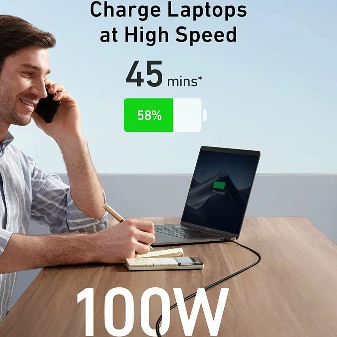 - Мощность 100 Вт: Обеспечивает невероятно быструю зарядку совместимых устройств, включая ноутбуки, планшеты и смартфоны.