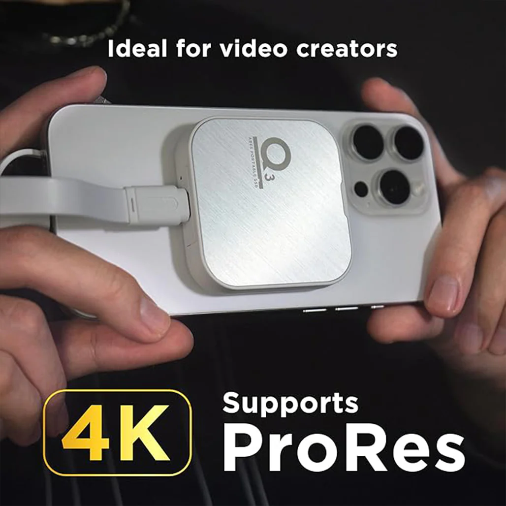 - Возможность записи в формате 4K: Dato Q3 идеально подходит для кинематографистов, так как позволяет напрямую записывать видео в формате 4K ProRes HDR, предлагая решения для хранения данных профессионального уровня.